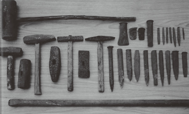 肥野喜六・常太郎愛用の石工道具の一部 伊那市富県の石工道具