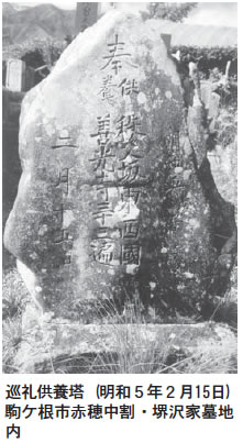 寂応の生誕地は上片桐の宿場の中ほどにあり、田島の松村理兵衛とも近しい間柄であったと思う。郷里の先達「尊応」和尚の生まれた家であり、尊応住職代に雨乞い獅子舞に使用された「青獅子」の寄進が、光前寺文書に記録があるなど、尊応との関わりが深い田島松村家が寄進を申し出たと考えられるのである。その後の寂応の時代に守屋貞治を紹介し「青面金剛」像の彫像となったと考える。この経過については「名工伝守屋貞治(2)に詳述した。宮田村の西国三十三観音のうち、貞治が手掛けた6体は、青面金剛造立を前後した享和元年から始まった。