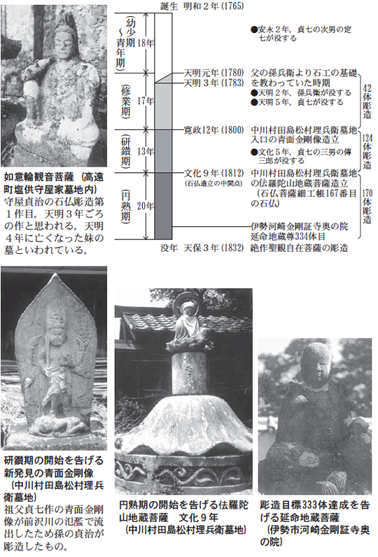 守屋貞治石工歴編年表(修業期~研鑚期~円熟期の3段階変遷)